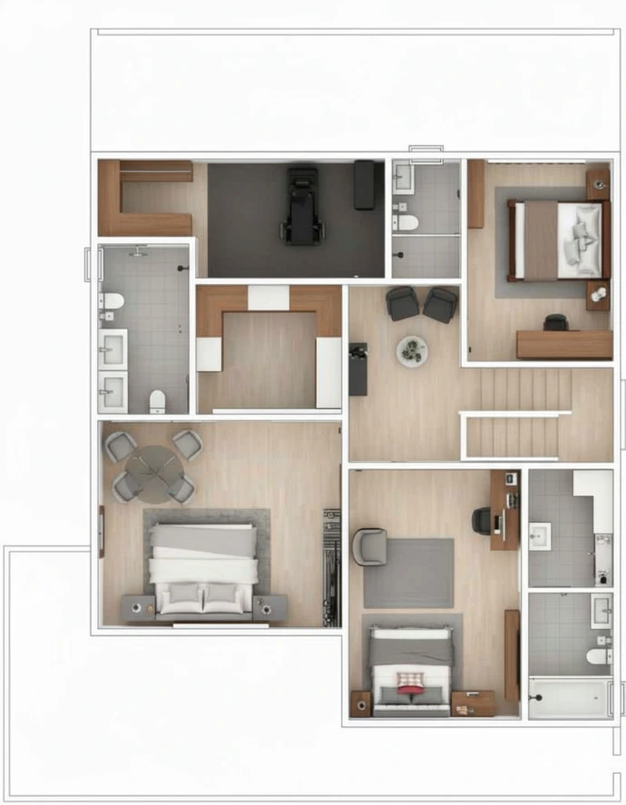 Com três quartos, oferece conforto e privacidade para toda a família. A ampla sala de estar é ideal para receber amigos e familiares, proporcionando um ambiente acolhedor e espaçoso.