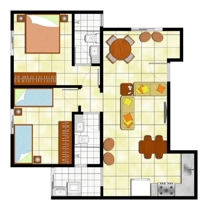 Os apartamentos possuem um ambiente bem distribuído, garantindo que cada espaço seja aproveitado ao máximo. A disposição inteligente dos cômodos proporciona uma sensação de amplitude e funcionalidade, ideal para o conforto dos moradores.