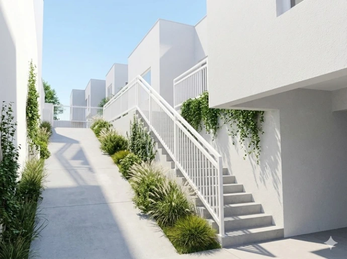 Um lote com 300m² (10x30) de área, em declive favoreceu o estudo deste projeto. .