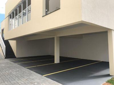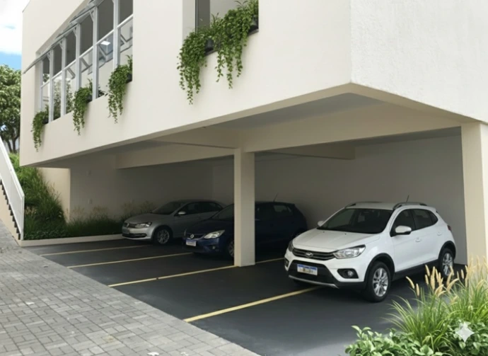 O salão construído em pilotis, permitiu utilização da área como estacionamento.